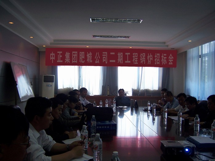 5月19日上午,中正集團肥城公司二期工程鍋爐招標會在集團總部二樓會議室舉行。肥城市建設局領(lǐng)導、中正集團領(lǐng)導班子及肥城公司董事參加了招標會,來自天津、江蘇、山東等地的4家商家參加了競標。